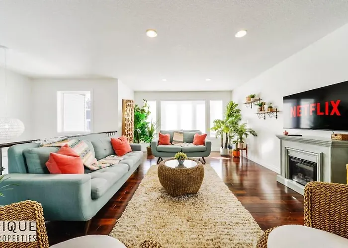 The 279 m² Spacious 6Bdr Oasis - Sleeps 17 - Garage - Fireplace Edmonton apartment is located around a 25-minute walk from Buena Vista Park and 3.1 km from the World Waterpark. This apartment provides active guests with the opportunity to enjoy a golf course.